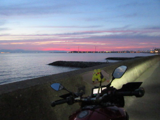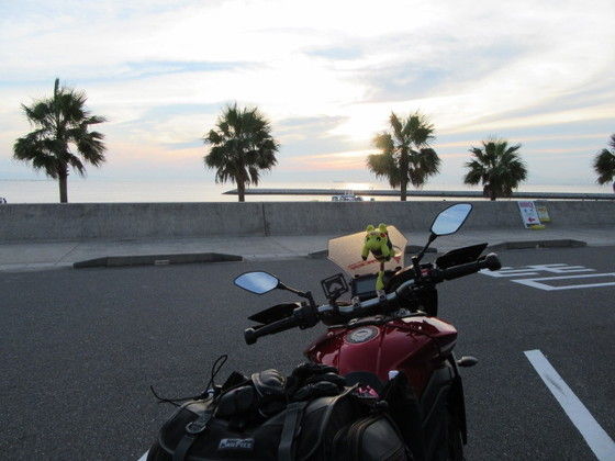 往復 FZR750 と もとちゃん 飛行機でし。
