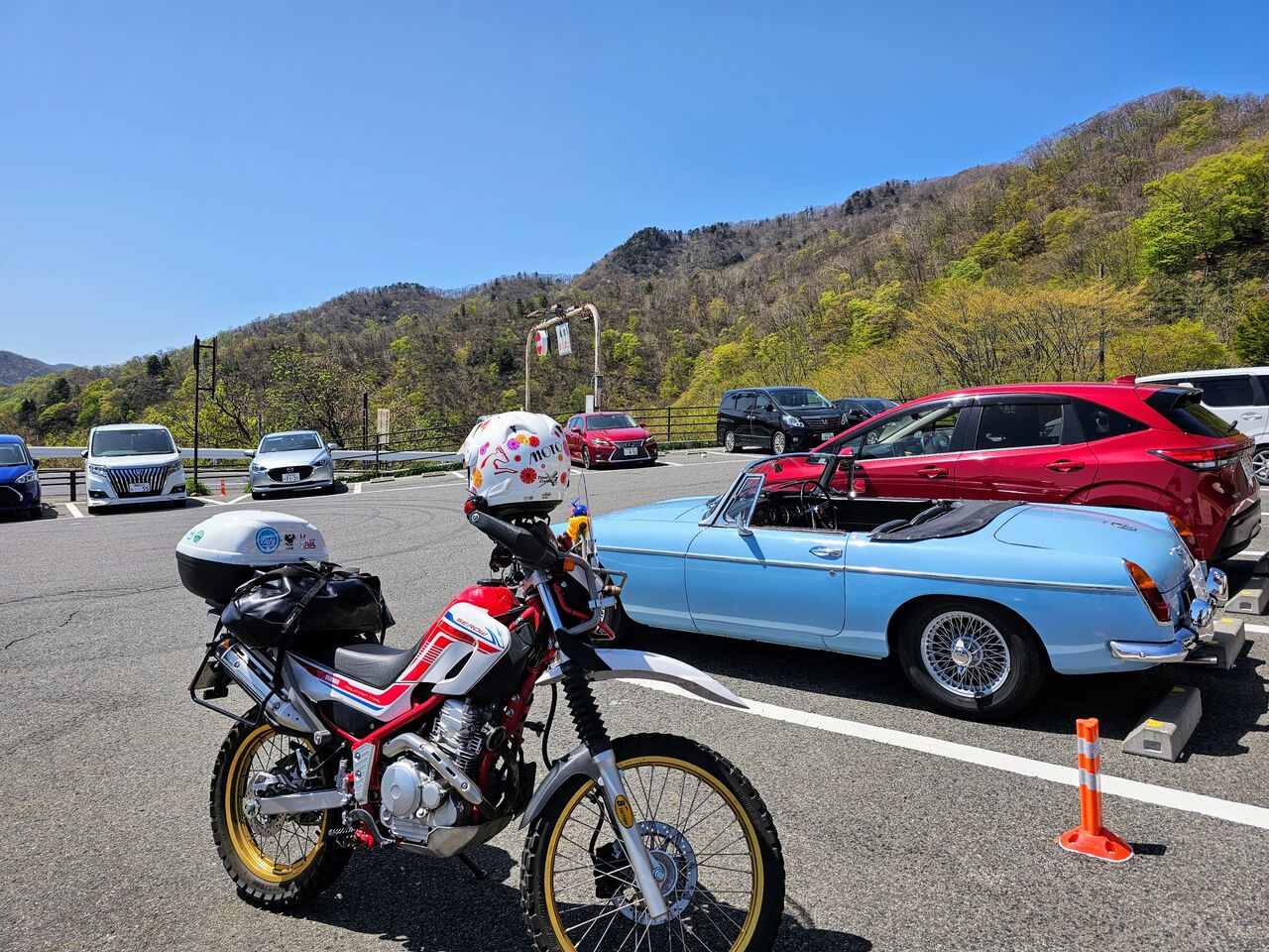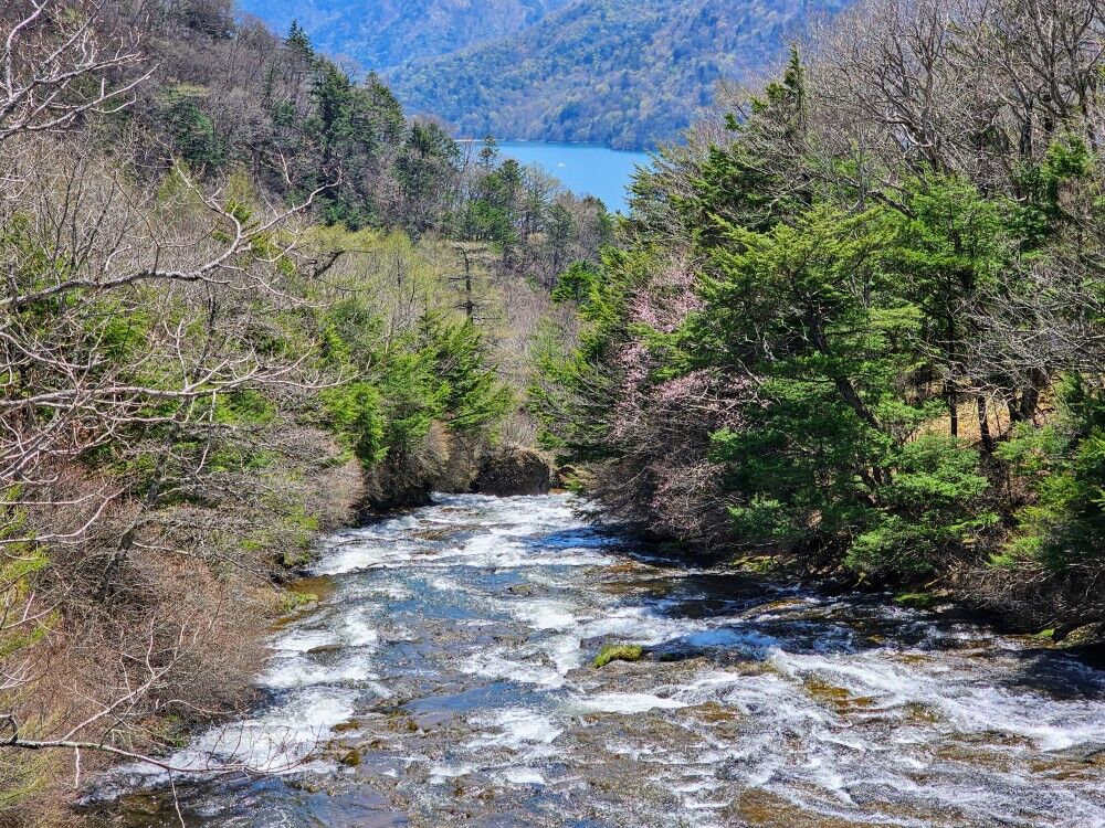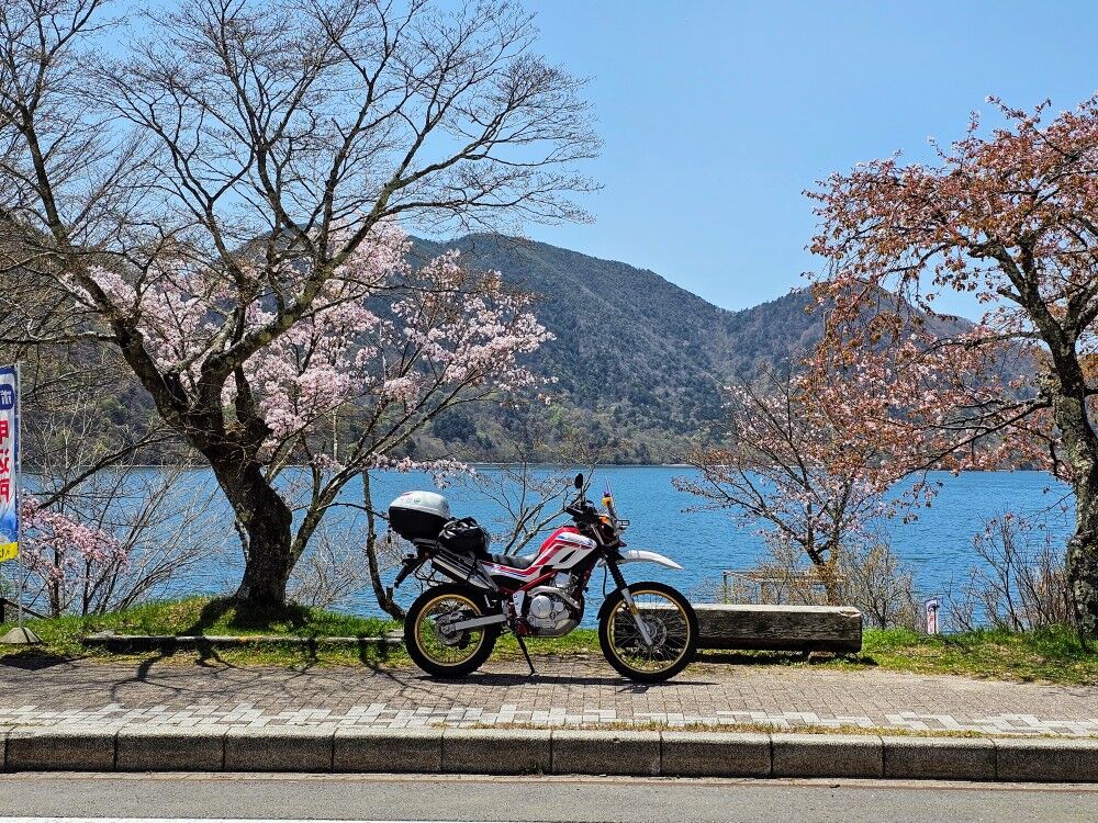 中禅寺湖と桜とセロー (*´∇`*)