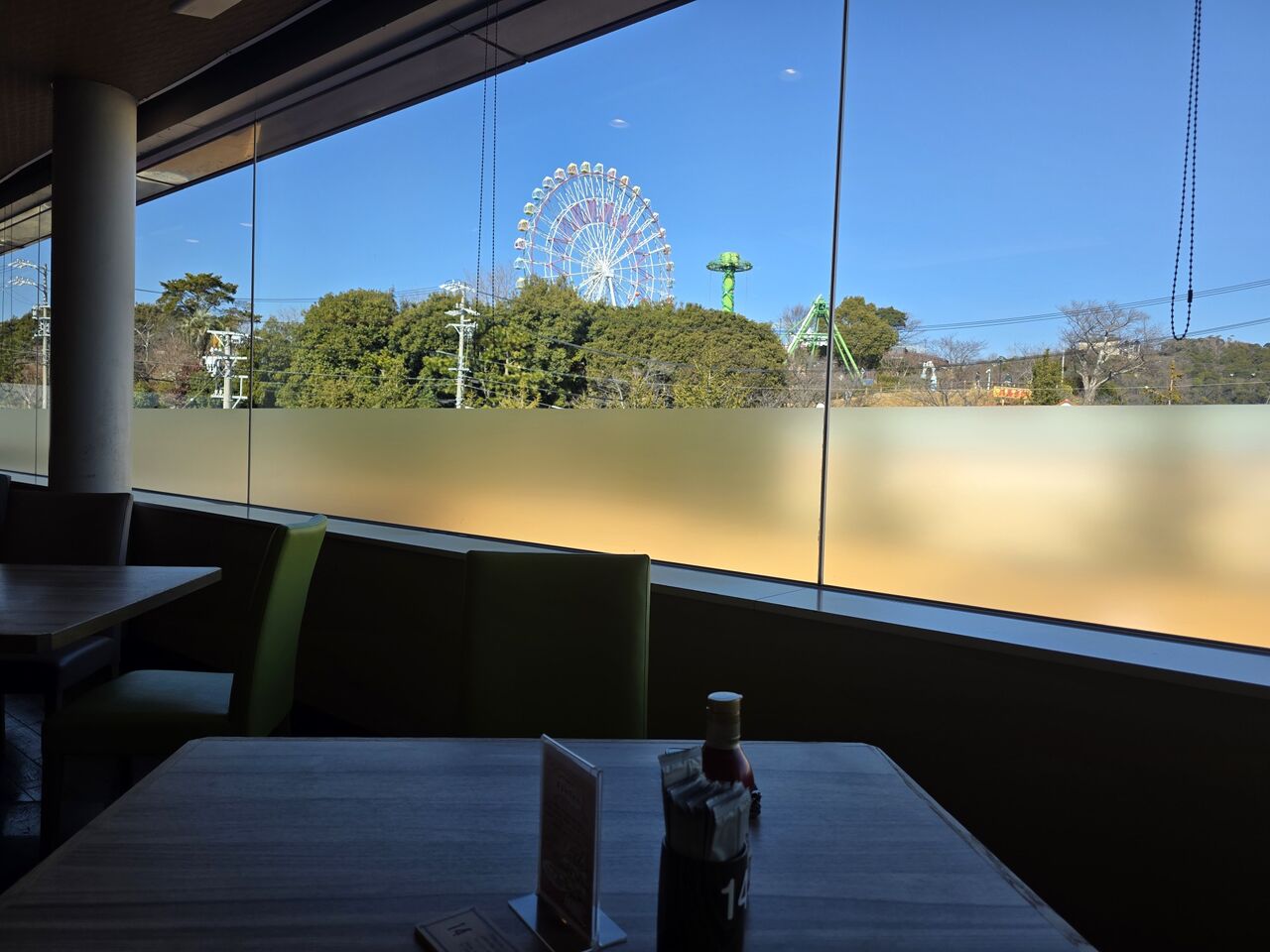 遊園地を見ながら頂きます。