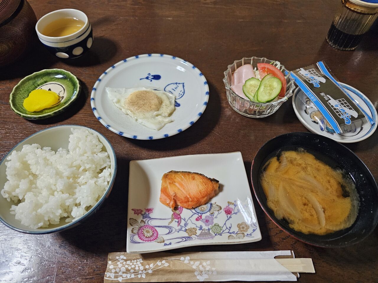 焼き魚冷たいけど 玉葱の味噌お汁ぬるいけど。