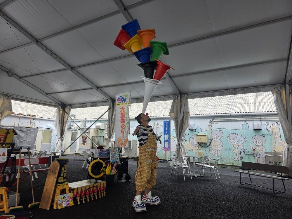 中央広場で大道芸をやっていたので見学します。