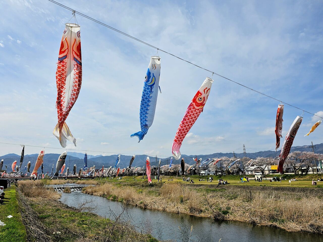 桜と鯉のぼりと伊吹山