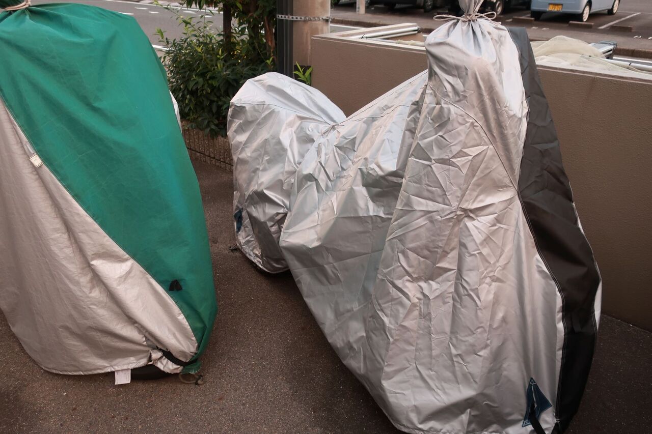 仕事中にテントなどを干して