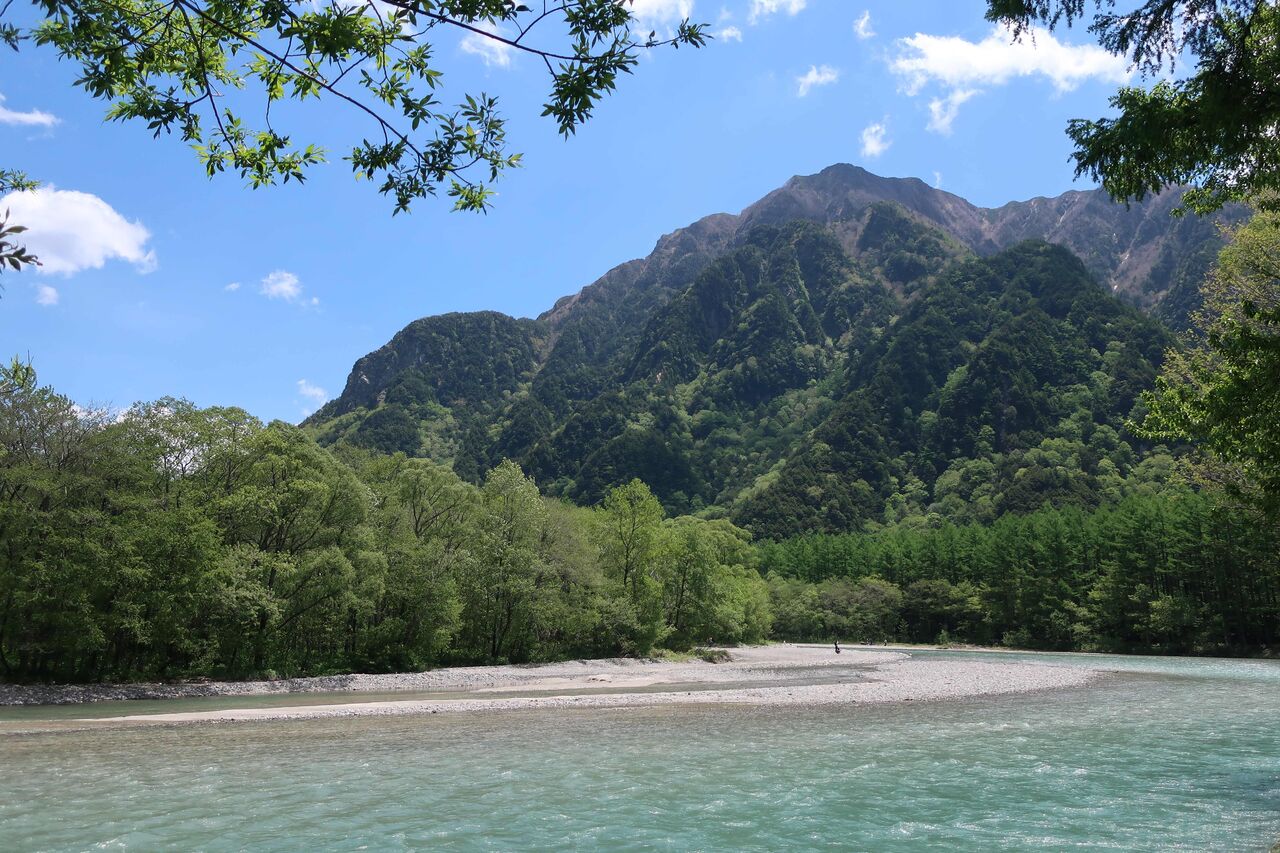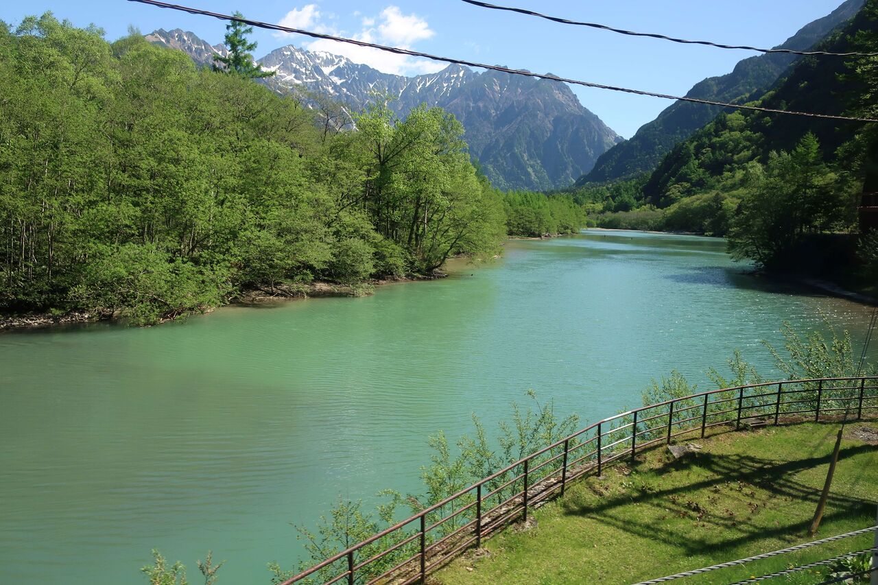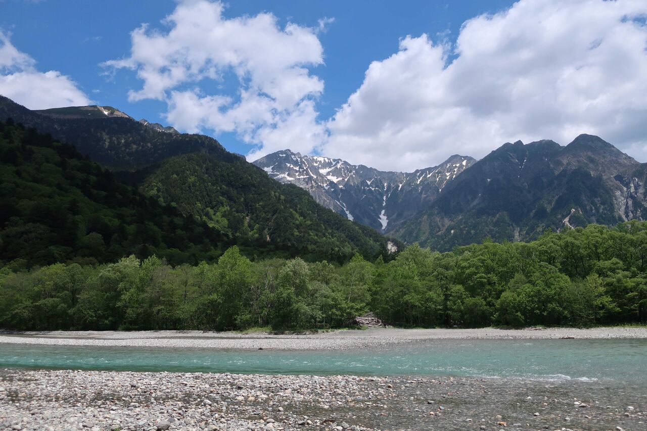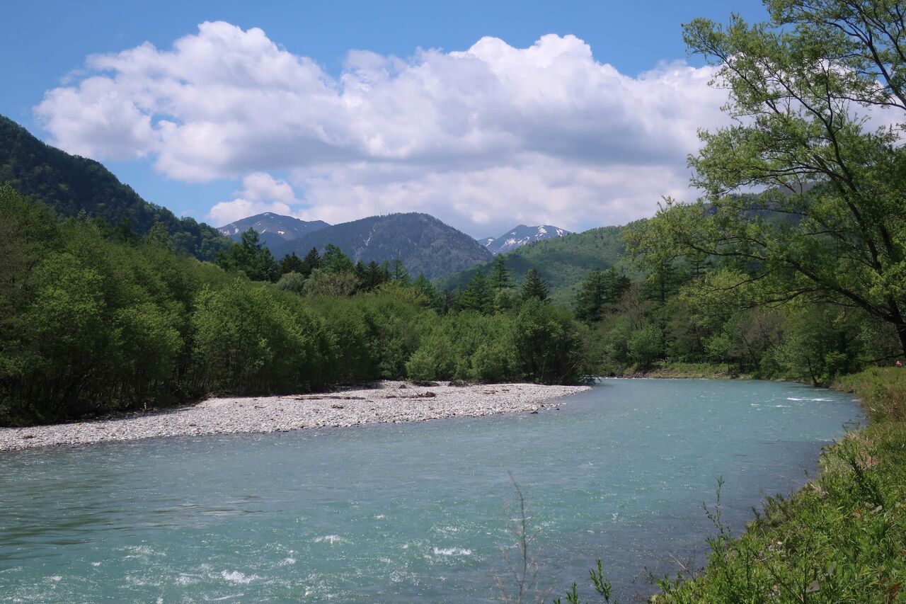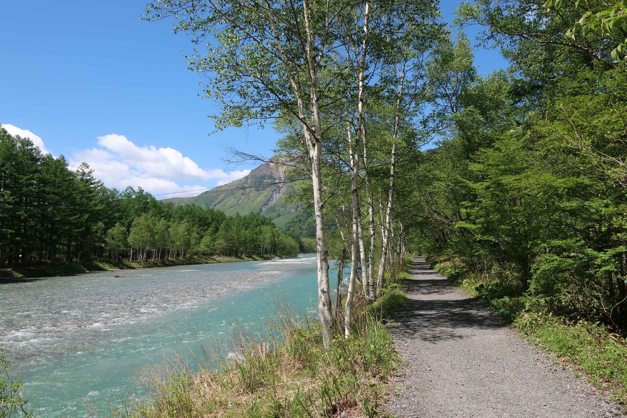 梓川沿いを穂高連峰を見ながら。