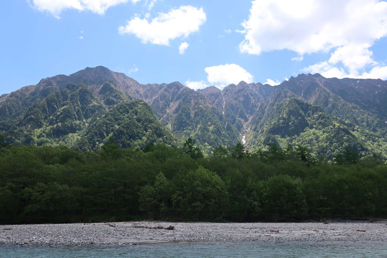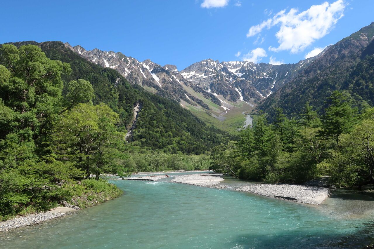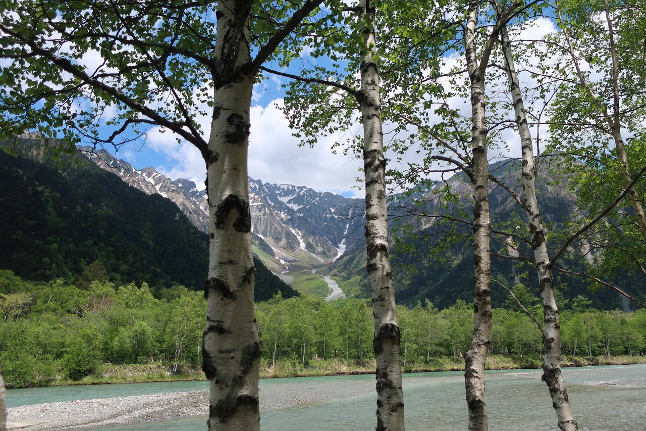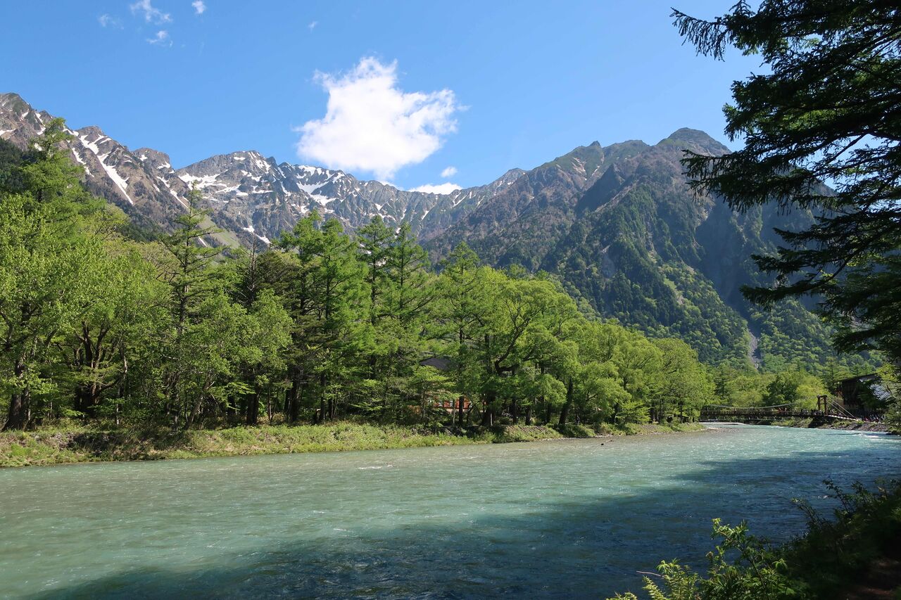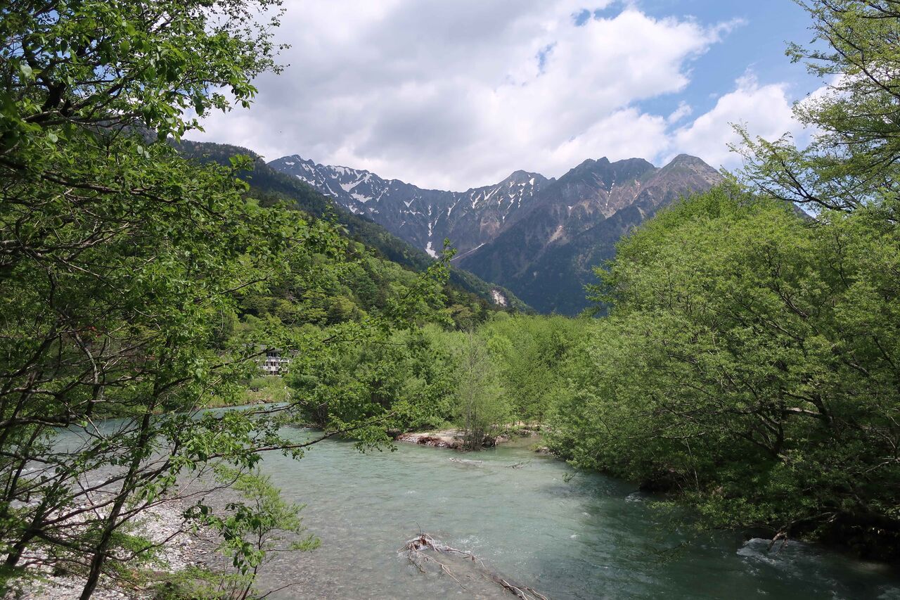 梓川沿いを穂高連峰を見ながら。